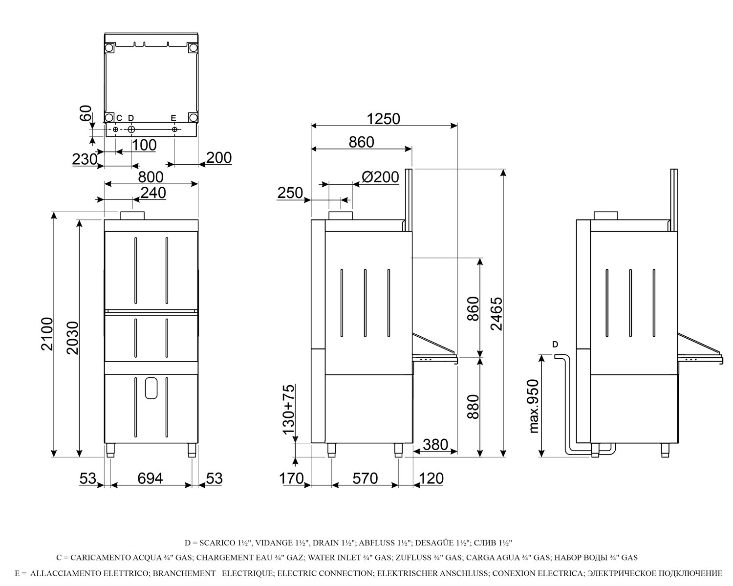 Схема встраивания для профессиональной посудомоечной машины Smeg UW6070DPS