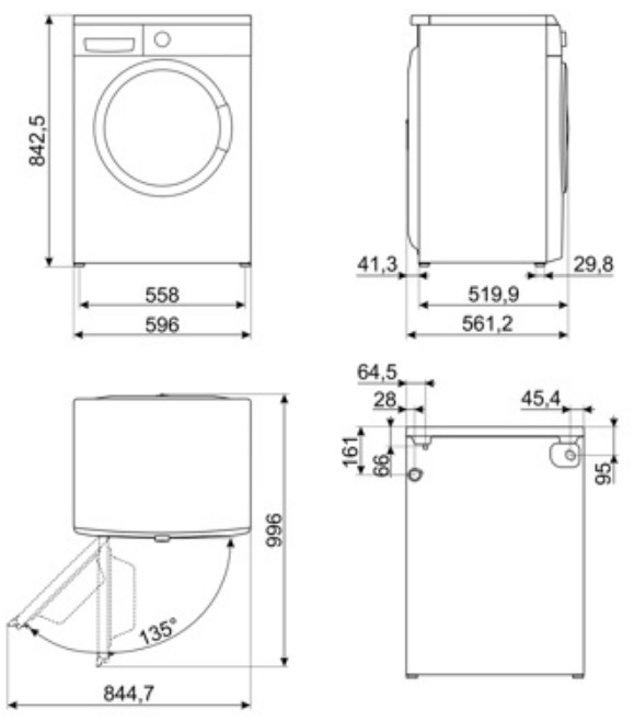 Схема встраивания для стиральной машины Smeg LB1T70IT