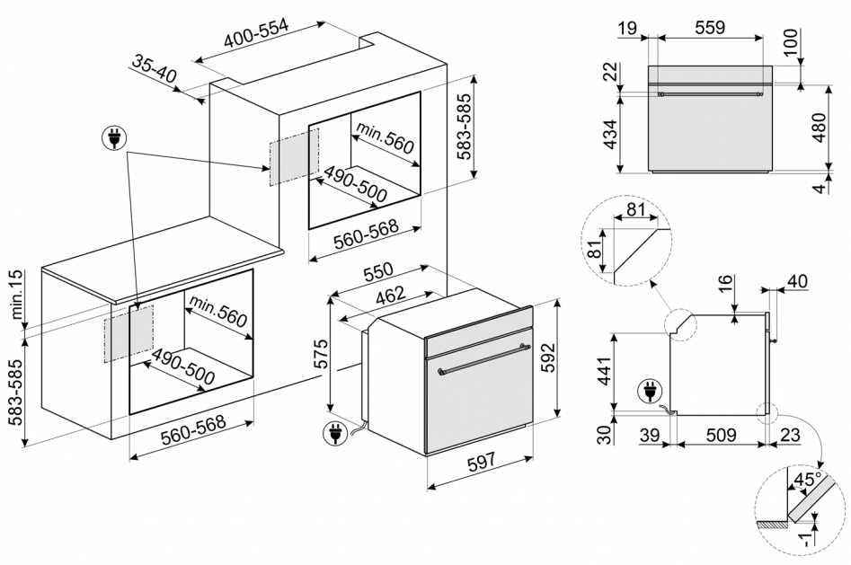 Схема встраивания для духового шкафа Smeg SFP68C1TPO
