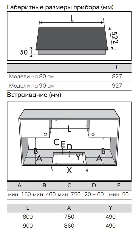 Схема встраивания для варочной панели Smeg SISL7964MB