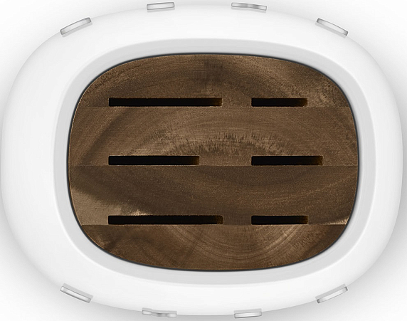 Особенности конструкции включают натуральные вставки из акации в пазах, которые не только защищают клинки от соприкосновения, но и уменьшают вероятность повреждений при извлечении. Подставка организована с приоритетом безопасности: плотное основание из пластика стабилизирует весь блок, а дизайн пазов исключает контакт лезвий между собой, способствуя длительному сохранению режущих кромок. Отдельное внимание уделено эргономике: балансировка каждого элемента снижает нагрузку на кисть и позволяет выполнять стандартные операции быстрее и точнее, чем с однотипными аксессуарами. Нельзя мыть детали в посудомоечной машине, поэтому уход предполагает ручную очистку, которая одновременно продлевает срок службы и сохраняет первозданный вид поверхности.
