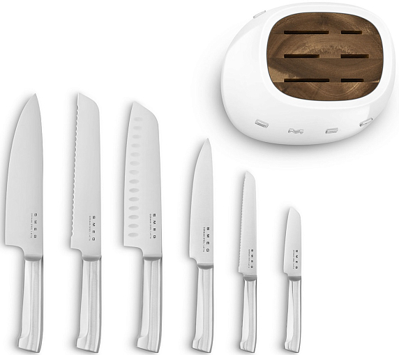 Комплект ножей Smeg KBSF02WH — элегантное сочетание утончённой эстетики и практичного подхода к кухонным задачам. Дизайн выполнен в универсальном белом тоне, который гармонирует с разнообразными поверхностями и цветами кухонной мебели, придавая пространству свежесть и аккуратность. Корпус изготовлен из нержавеющей стали, а основание — пластик, что обеспечивает визуальную лёгкость и устойчивость одновременно; натуральное дерево акация использовано в материалах пазов для ножей, добавляя тёплый оттенок и тактильную привлекательность. Размеры корпуса составляют 23.2 х 13.5 х 19 см, высота 23.2 см, ширина 13.5 см, глубина 19 см, что делает прибор компактным и удобным для размещения на столешнице либо в рабочем модуле. Вес брутто 3.8 кг указывает на качественную комплектацию и добротную подставку, рассчитанную на длительную эксплуатацию.
