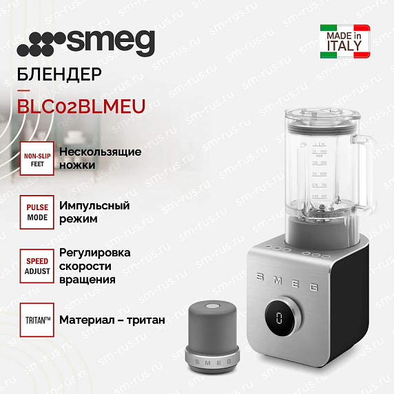 Блендер SMEG BLC02BLMEU из коллекции Collezione — это воплощение итальянского стиля и функциональности в одном устройстве. Его элегантный черный корпус, выполненный из прочного пластика, идеально впишется в современный интерьер любой кухни, добавляя нотку изысканности и утонченности. Высокие внешние габариты 42.1×16.8×22.5 см делают прибор заметным, но при этом компактным, позволяя с комфортом разместить его на столешнице или в рабочей зоне. Материал кувшина и мерного стаканчика — тритан, что гарантирует долговечность и безопасность при контакте с пищей, а также устойчивость к повреждениям и царапинам. Такая конструкция способствует сохранению прозрачности и легкости в уходе, что особенно важно для поддержания гигиены и эстетики.