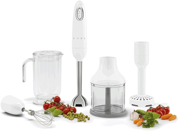 Блендер Smeg HBF02WHEU в белом цвете оснащен съемными лезвиями из нержавеющей стали с системой смешанного потока FlowBlend для достижения более эффективных результатов измельчения. Ручка с прорезиненным покрытием Soft Touch обеспечивает более безопасное использование. Измельчитель в комплекте раздробить твердые ингредиенты.