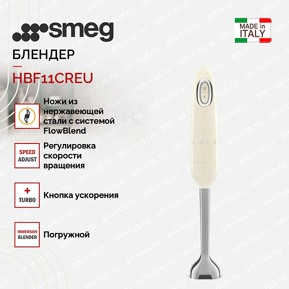 Блендер Smeg HBF11CREU выполнен в кремовом цвете в стиле 50-х годов, прибор будет эффектно смотреться в ретро интерьере. Система измельчения FlowBlend гарантирует эффективный и качественный результат. Ножка из нержавеющей стали не подвержена коррозии и внешнему воздействию. Хромированная окантовка подчеркнет утонченность стиля.