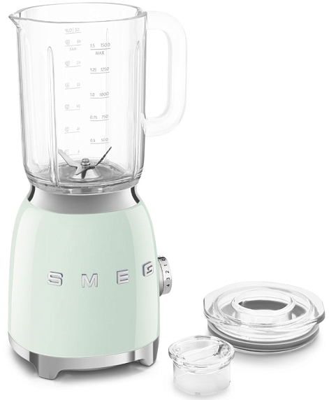 Блендер SmegBLF03PGEU имеет 4 программы и еще 4 режима работы среди них, есть импульсный. Управление осуществляется с помощью поворотного регулятора, на нем отображаются все функции. Благодаря противоскользящим ножкам, устройство будет устойчиво при работе.