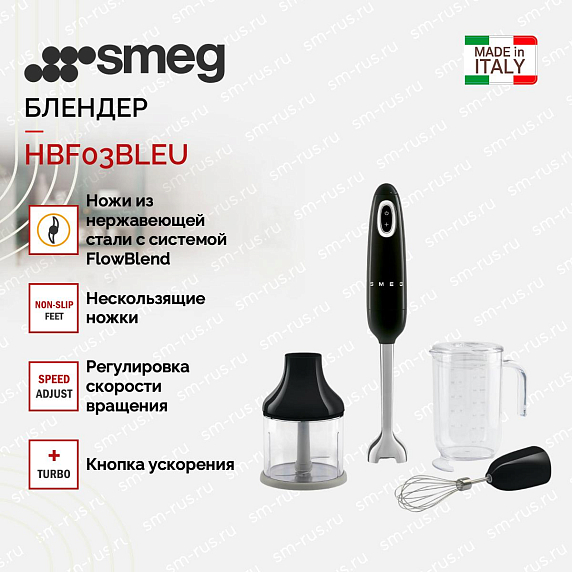 Блендер Smeg HBF03BLEU — это уникальный сочетание стиля и функциональности, воплощенное в приборе, созданном для удовлетворения всех ваших кулинарных потребностей. Этот погружное устройство, выпущенное в рамках коллекции «Стиль 50-х годов», отличается своим элегантным дизайном и высоким качеством исполнения. Внешние габариты прибора составляют 41.4×6.5×6.5 см, что делает его компактным и удобным в использовании.