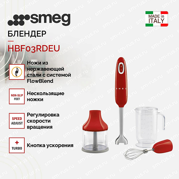 Устройство имеет компактные размеры и весит всего 3.5 кг, что позволяет легко перемещать его по кухне. В комплекте также идет кувшин объемом 1.4 литра для удобства приготовления пищи. Все эти особенности делают блендер Smeg HBF03RDEU идеальным выбором для любой современной кухни.