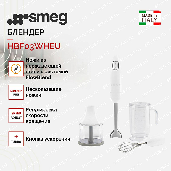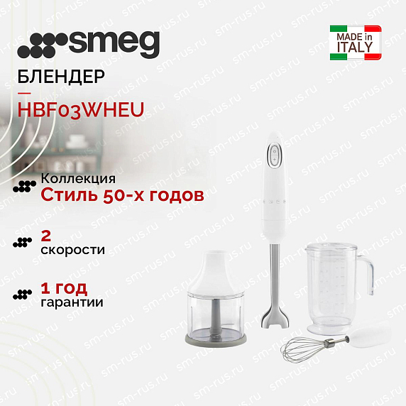Блендер Smeg HBF03WHEU представляет собой сочетание стиля 50-х годов и современных технологий. Этот уникальный погружной прибор, произведенный в Китае, обладает внешними габаритами 41.4×6.5×6.5 см, что делает его компактным и удобным в использовании. Стильный белый цвет корпуса, выполненного из высококачественного пластика, в сочетании с погружной частью из нержавеющей стали, делают его не только функциональным, но и эстетически привлекательным.