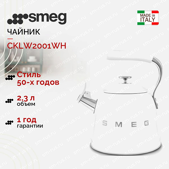 Чайник Smeg CKLW2001WH со свистком — это уникальное сочетание стиля и функциональности. Этот изделие, выполненное в стиле 50-х годов, является идеальным выбором для любителей ретро-дизайна и высокого качества. Благодаря своему белому цвету, он идеально впишется в любой интерьер, добавляя ему нотку элегантности и шарма.