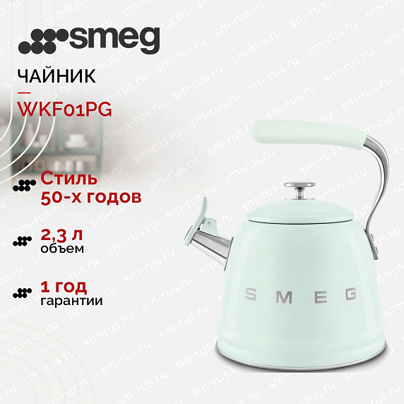 Чайник Smeg WKF01PG из коллекции «Стиль 50-х годов» — это сочетание функциональности и эстетики. Изготовленный из нержавеющей стали, он имеет привлекательный пастельно-зеленый цвет, который добавит яркости на вашу кухню и придаст ей неповторимый стиль. Размеры составляют 20 см в высоту, 20 см в ширину и 15.2 см в глубину, что делает его компактным и удобным для использования.