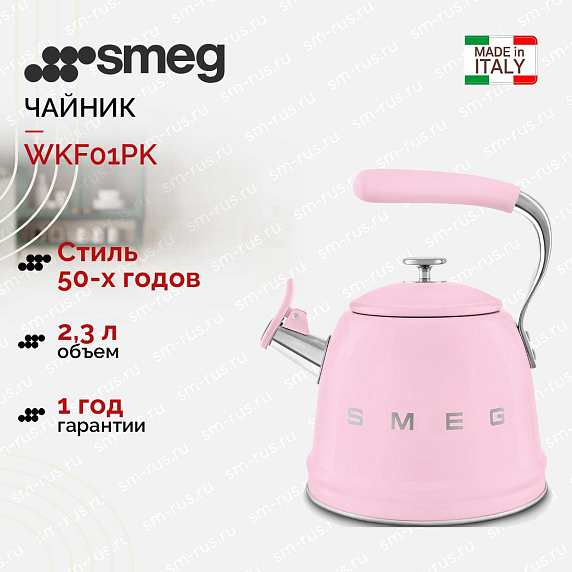 Чайник Smeg WKF01PK является ярким представителем коллекции «Стиль 50-х годов», которая отличается своим уникальным и неповторимым дизайном. Корпус данного устройства выполнен из нержавеющей стали, что обеспечивает его долговечность и устойчивость к коррозии. Мягкий розовый цвет придаетприбору особый шарм и позволяет ему стать настоящим украшением любой кухни, а его компактные размеры (высота 20 см, ширина 20 см и глубина 15.2 см) позволяют разместить его даже на самой маленькой кухне.
