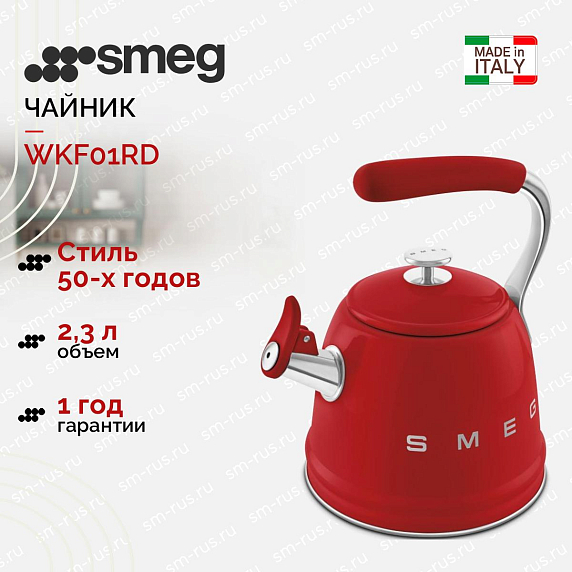 Чайник Smeg WKF01RD — яркий представитель коллекции «Стиль 50-х годов», выполненный в насыщенном красном цвете и созданный для тех, кто ценит ретро-эстетику в сочетании с современными технологиями. Изящные округлые линии, глянцевая поверхность и тонкая отделка придают предмету характерный винтажный облик, способный стать центральным акцентом интерьера кухни. Корпус изготовлен из нержавеющей стали, что обеспечивает устойчивость к коррозии и долговечность при ежедневном использовании, а внутренняя поверхность продумана для лёгкого ухода; общий объём составляет 2.3 л, оптимальный для семьи или небольшой компании. Высота аппарата — 20 см, ширина — 20 см, глубина — 15.2 см, что делает прибор компактным и удобным для размещения на рабочей поверхности или в шкафу.