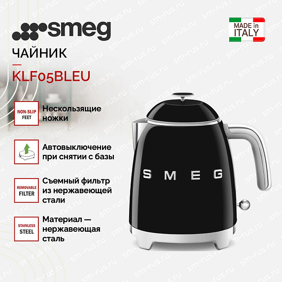 Электрический чайник Smeg KLF05BLEU — это великолепная стильная модель, дизайн которой выдержан в стилистике 50-х годов