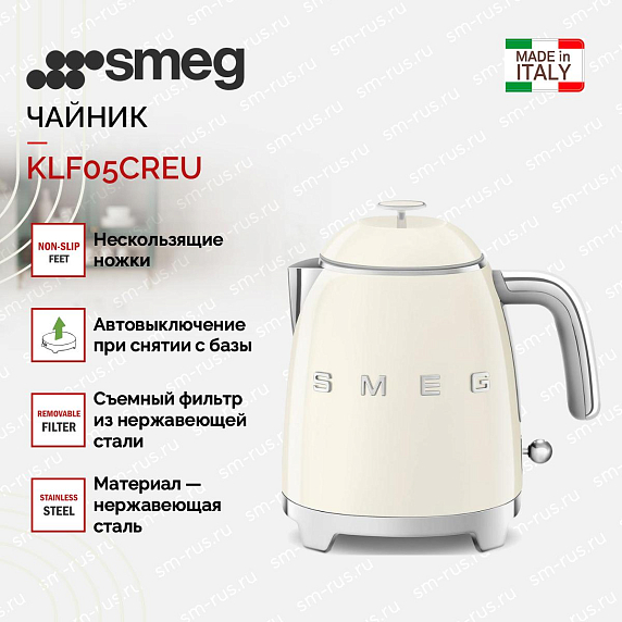 Электрический чайник Smeg KLF05CREU- это нежная и изысканная модель объёмом 0,8 л