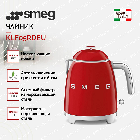 Электрический чайник SMEG KLF05PDEU выполнен в красном цвете и отлично дополнит интерьер любой кухни. Это устройство надежно и долговечно, поскольку его внутренний корпус изготовлен из прочной легированной стали, устойчив к загрязнениям, высоким температурам и не подвержен ржавчине. Этот материал прост в использовании и требует небольших усилий по очистке.