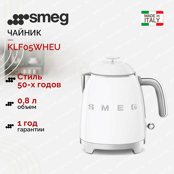 Электрический чайник SMEG KLF05WHEU выполнен в белом цвете и отлично дополнит интерьер любой кухни. Это устройство надежно и долговечно, поскольку его внутренний корпус изготовлен из прочной легированной стали, устойчив к загрязнениям, высоким температурам и не подвержен ржавчине. Этот материал прост в использовании и требует небольших усилий по очистке.