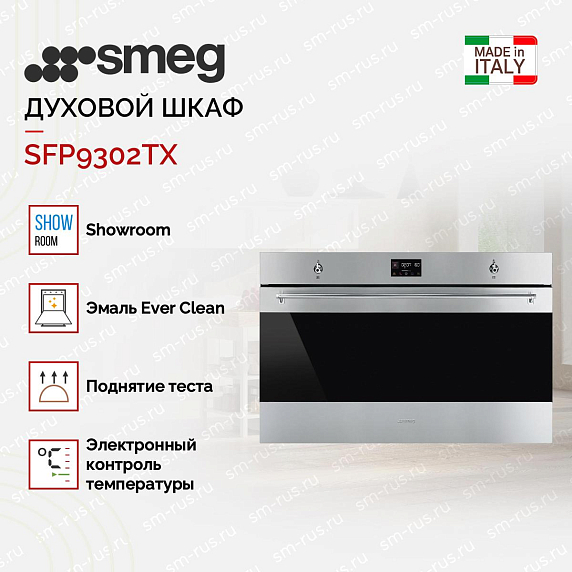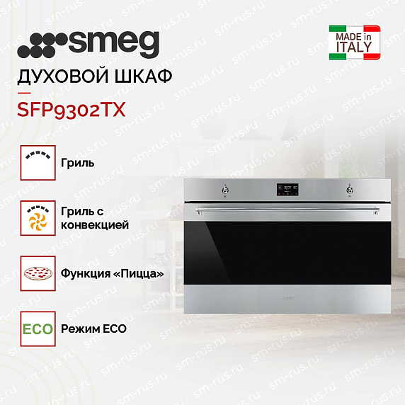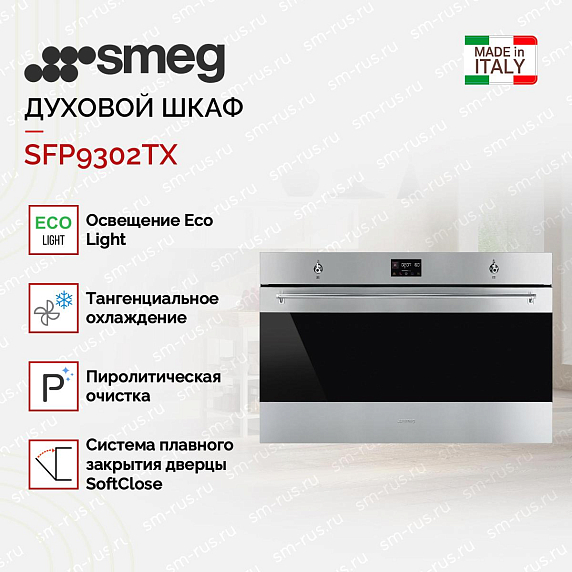 Духовой шкаф Smeg SFP9302TX — это сочетание высокого качества, продуктивности и стильного дизайна. Произведенный в Италии, этот прибор отражает все лучшие качества европейского производства. Он не только выглядит великолепно, но и предлагает множество функций, которые делают приготовление пищи проще и удобнее.