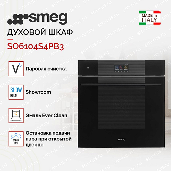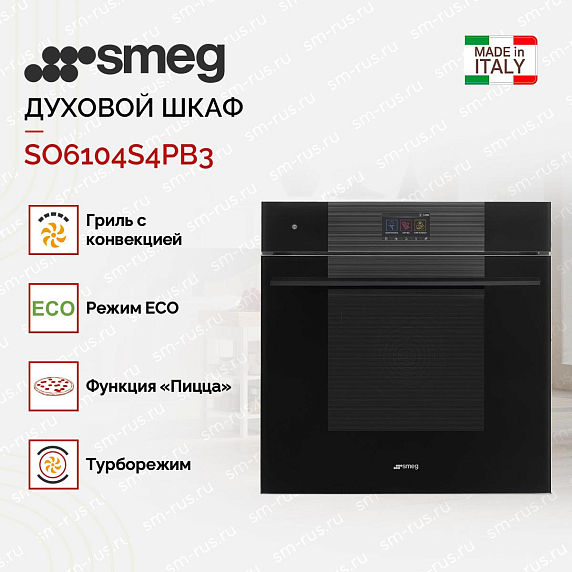 Духовой шкаф Smeg SO6104S4PB3 — выразительное сочетание благородного итальянского дизайна и передовых технологий, созданное для тех, кто ценит элегантность и профессиональные результаты. Глубокий черный корпус коллекции Linea плавно интегрируется в современную кухню, делая фронтальную панель визуально легкой благодаря минималистичной фурнитуре в том же тоне. Сплошное внутреннее стекло дверцы и аккуратные сенсорные переключатели создают ощущение премиальной точности, а TFT-дисплей обеспечивает понятный интерфейс управления с быстрым доступом к режимам. Система SoftClose и SilentClose отвечает за плавное и тихое закрытие, что повышает комфорт эксплуатации и убирает резкие звуки во время использования. Внутренняя камера емкостью 68 литров отделана эмалью Ever Clean, которая упрощает уход и сохраняет эстетичный вид даже при частом приготовлении густых или жирных блюд. Наличие двух галогенных ламп с Eco Light гарантирует отличную видимость процесса на всех уровнях, не создавая лишней нагрузки на энергопотребление.