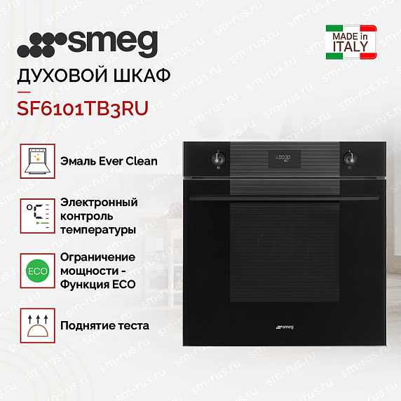 Духовой шкаф Смег SF6101TB3RU — это не просто духовой шкаф, а интеллектуальный кухонный центр, сочетающий безопасность, энергоэффективность, лёгкость ухода и богатую функциональность. Как официальный дилер, мы предлагаем только оригинальную продукцию с полной гарантией производителя. Вы можете протестировать модель в нашем шоуруме, оценить эргономику и интерфейс вживую — и убедиться, что это именно тот прибор, который превратит вашу кухню в пространство вдохновения.