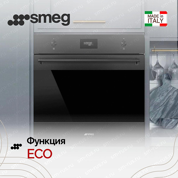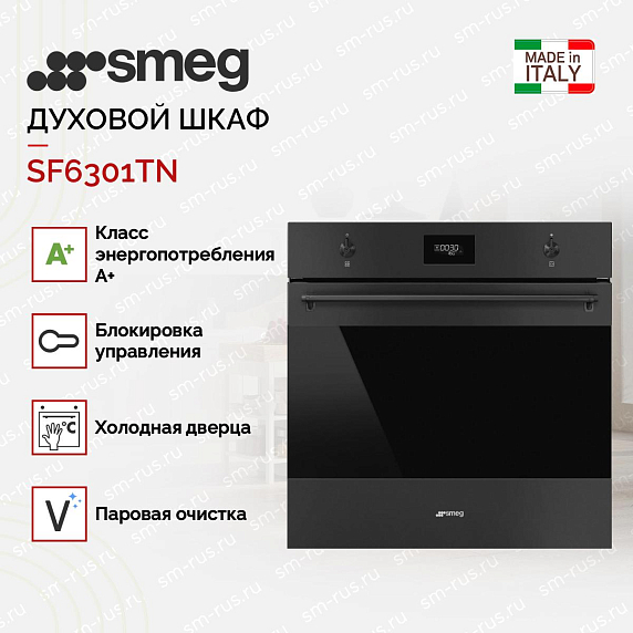 Духовой шкаф Smeg SF6301TN из коллекции Classica — это синтез практичности, эстетики и инженерной точности. Модель выполнена в глубоком чёрном цвете с покрытием AntiFingerprint, которое отталкивает отпечатки и пыль, сохраняя безупречный вид фасада без ежедневного ухода.