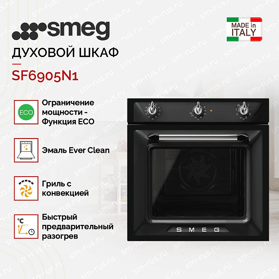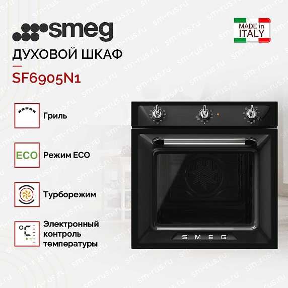 Духовой шкаф Smeg SF6905N1 прост и элегантен на вид. Электрический способ подключения гарантирует широкие возможности в приготовлении и эксплуатации.