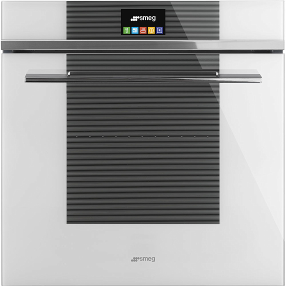 Духовой шкаф Smeg SFP6104TVB из серии Linea белого цвета оборудован TFT-дисплеем, который наглядно отображает ход работы устройства. Настройка нужного режима и температуры осуществляется посредством сенсорных переключателей. Четырехслойное остекление дверцы исключает вероятность получения ожогов, выдерживает высокие температуры, благодаря чему духовка имеет функцию пиролитической очистки.