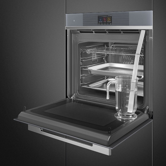 Духовой шкаф Smeg SO6104S4PS выполнен в серебристом цвете с сенсорной панелью управления. Комбинированные режимы с паром позволят достигнуть наиболее эффективных результатов при готовке. Программа размораживания по времени автоматически определяет сколько минут потребуется для разморозки продукта. Гидролитическая очистка упростит уход за прибором, загрязнения размягчатся под воздействием пара и без труда удалятся традиционным способом с помощью губки.