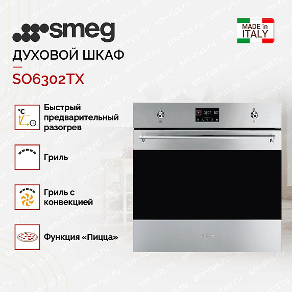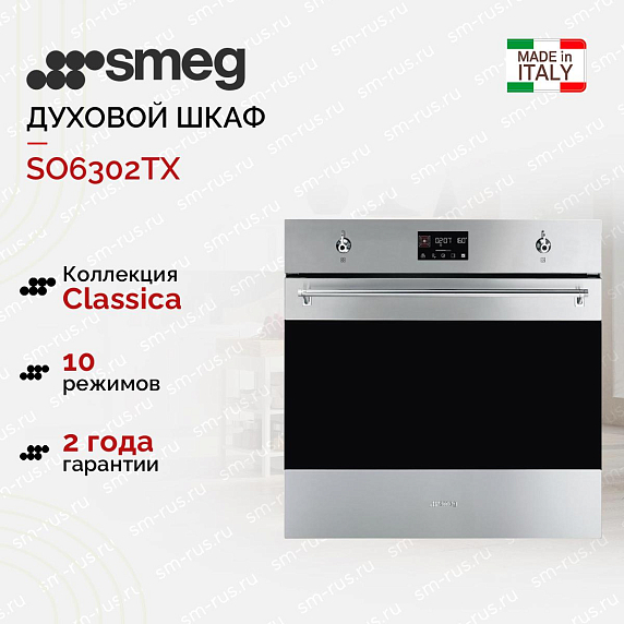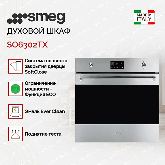 Духовой шкаф Смег SO6302TX — это выбор тех, кто ищет надёжную, технологичную и визуально сдержанную технику без избыточных функций. Приобрести оригинальный прибор с официальной гарантией 24 месяца, профессиональной консультацией по подключению и доставкой можно у нас — мы являемся авторизованным партнёром бренда и гарантируем подлинность каждой единицы техники.