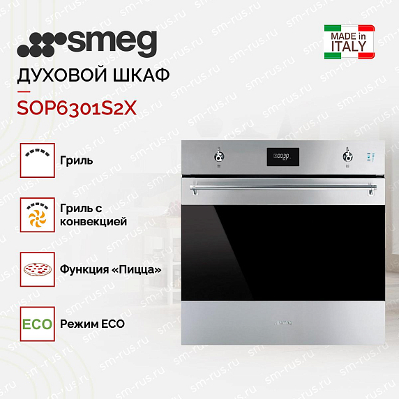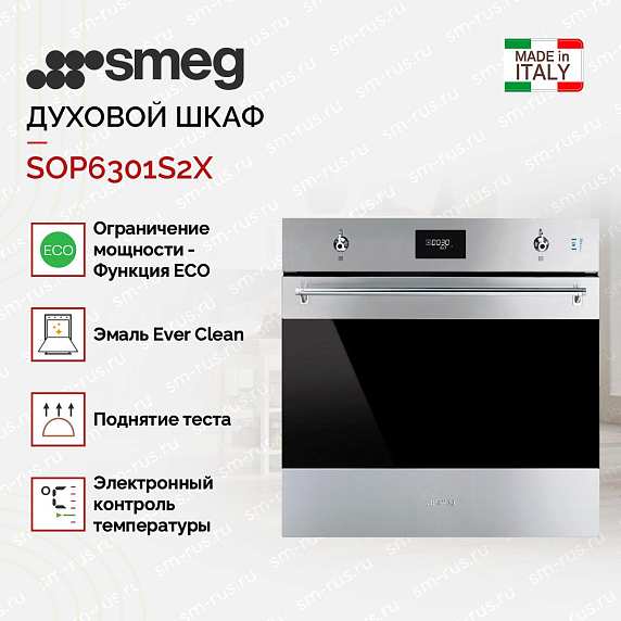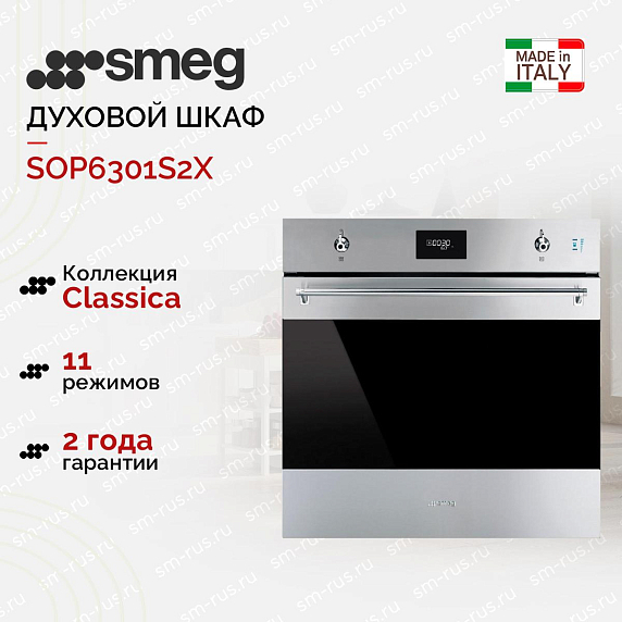 Духовой шкаф Smeg SOP6301S2X из коллекции Classica выполнен в цвете «Нержавеющая сталь» и прекрасно дополнит любую кухню. Прибор предусматривает в себе пиролитическую систему очистки, которая эффективно устраняет все загрязнения. 11 различных режимов работы позволяют комфортно готовить блюда различной сложности. Благодаря технологии подачи пара LITE-steam к некоторым функциям можно добавлять пароувлажнение (20 или 40% интенсивности пара).