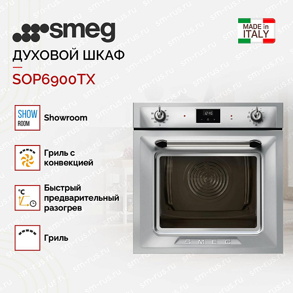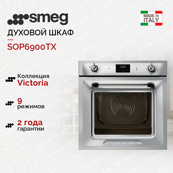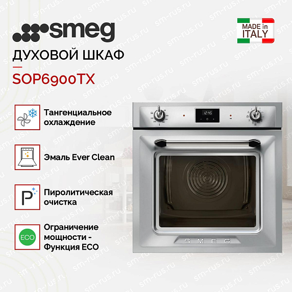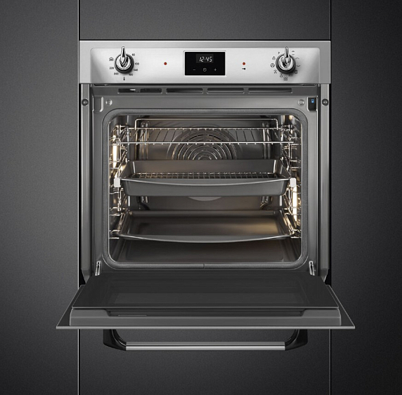 Духовой шкаф Smeg SOP6900TX выполнен в цвете нержавеющей стали с поворотными переключателями. Прибор сочетает в себе изысканность классического стиля и функциональность современных технологий. 9 режимов нагрева позволят подобрать наиболее подходящий для всех типов готовки. Устройство оснащено пиролитической очисткой, которая эффективно удаляет любые загрязнения: под воздействием высоких температур даже самые стойкие остатки пищи на стенках камеры превратятся в пепел.