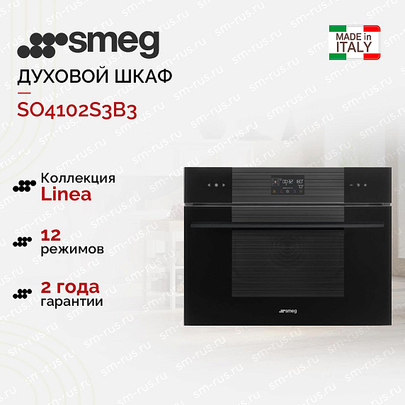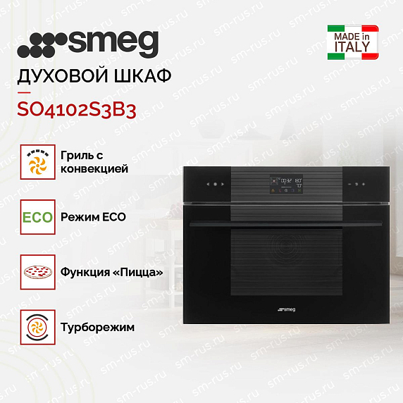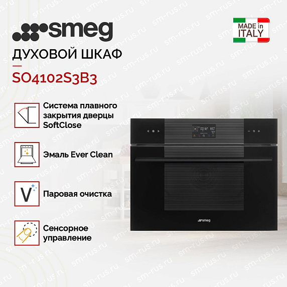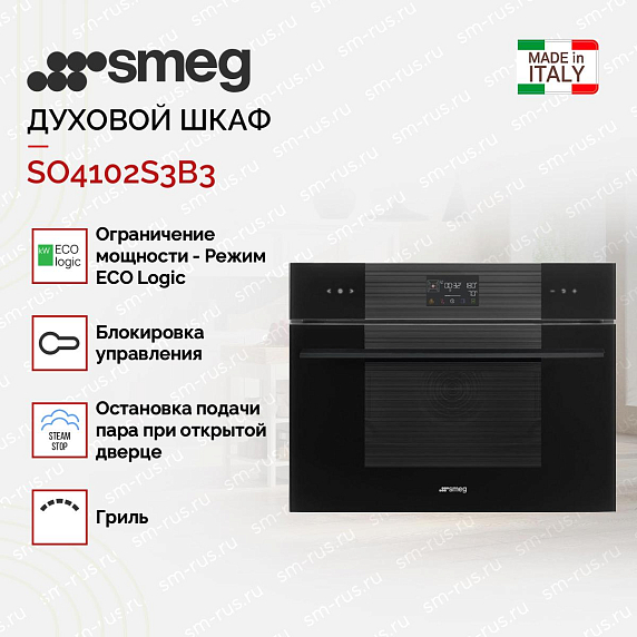 Компактный духовой шкаф с пароваркой Smeg SO4102S3B3 выполнен в черном цвете с сенсорным управлением. Петли Soft Close гарантируют плавное и бесшумное закрытие дверцы, не доставляя лишнего дискомфорта. Галогенное освещение обеспечит полный обзор рабочей камеры. Комбинированные режимы с паром позволят готовить полезные блюда.