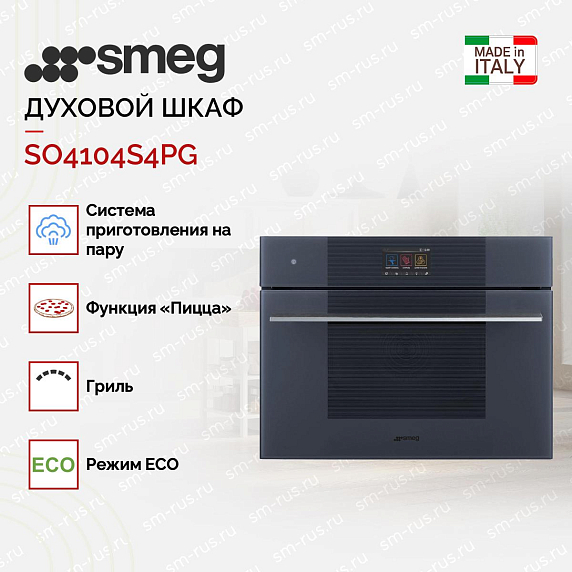 Духовой шкаф с пароваркой Смег SO4104S4PG — это умная, компактная и стильная кухонная станция для тех, кто ценит здоровое питание, точность приготовления и эстетику. Как официальный дилер, мы гарантируем подлинность продукции, полную комплектацию (включая решетку и противень) и официальную гарантию.