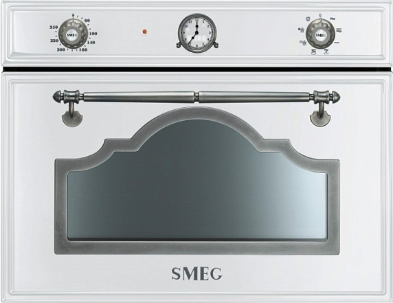 Духовой шкаф SMEG SF4750MCBS — компактный многофункциональный прибор с элегантным ретро-дизайном, выполнен в классическом белом цвете и оснащен фурнитурой оттенка состаренного серебра. Несмотря на небольшие размеры, эта модель может работать в качестве сразу двух бытовых приборов, так как она позволяет использовать ещё и микроволны. Аналоговый программатор с интегрированным дисплеем обеспечит удобное управление.
