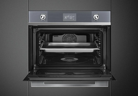 Компактная духовка Smeg SF4102VCN высотой 45 см и полезным объёмом 41 л имеет инновационные решения, которые понравятся любителям готовить сложные блюда.