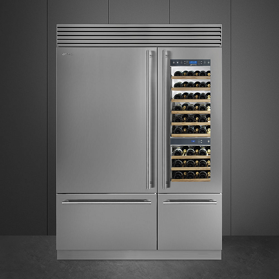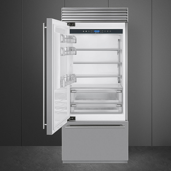 Холодильник SMEG RF396LSIX оснащен уникальным отделением Multizone, которое может быть использовано как холодильный или морозильный отсек. Вентилятор холодильной камеры равномерно распределяет воздух для поддержания стабильной температуры. Сенсорное управление обеспечивает точную настройку и установку необходимых параметров. LED-лампы ярко освещают отделения, исключая «слепые зоны».