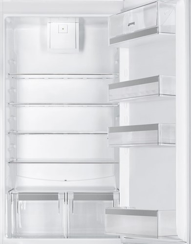 Пластик, использованный для изготовления деталей холодильников Smeg, отличается высокой прочностью и соответствует всем сертификатам качества и безопасности. Он хорошо выдерживает низкие температуры, устойчив к механическим повреждениям, не впитывает посторонних запахов и не желтеет со временем. Полки на двери предназначены для хранения продуктов в упаковках, а нижняя рассчитана в том числе и на хранение бутылок. Однако при размещении в ней объемных бутылок необходимо следить, чтобы они не препятствовали плотному закрытию дверей холодильника.