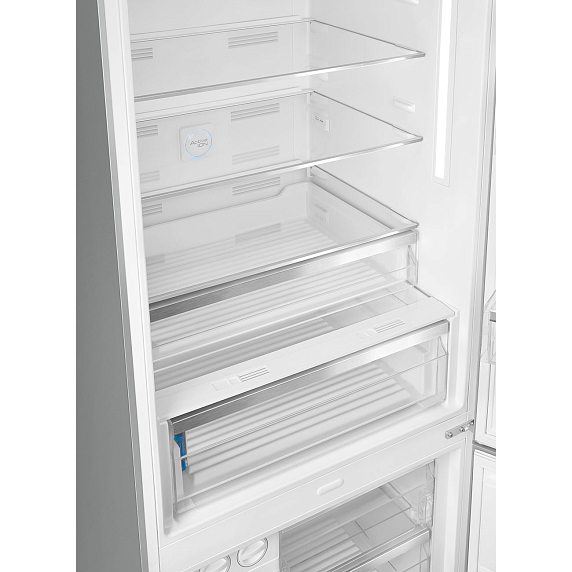 Холодильник Smeg FA490RX в цвете «Нержавеющая сталь» прекрасно дополнит любую кухню вместе с другой техникой линейки Portofino. При помощи LED-дисплея можно быстро и удобно настроить температуру в отделениях прибора или включить функцию "Суперзаморозка",например, если требуется охладить большое количество продуктов за раз. А его расположение внутри камеры убережет от случайных нажатий. Ручной ледогенератор позволяет приготовить лед тогда, когда он понадобится.