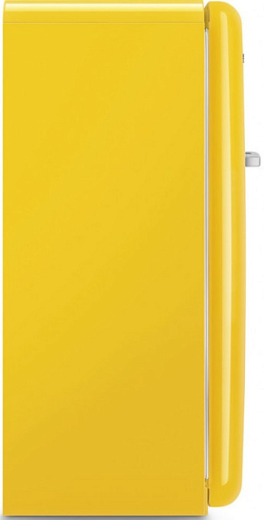 Холодильник Smeg FAB28RYW6 — выразительный образ ретро-стиля 50‑х годов, воплощённый в компактном отдельно стоящем приборе с классическим форм-фактором и ярким жёлтым фасадом. Эстетика эпохи подчёркнута аккуратной серебристой фурнитурой и плавными линиями корпуса, которые делают устройство заметным дизайнерским акцентом, одновременно сохраняя универсальность для разных интерьерных решений. Высота 153 см и ширина 60,1 см обеспечивают удобную интеграцию в кухонное пространство без необходимости капитальной перестройки, а глубина 72,8 см (78,8 см с ручкой) учитывает практические требования к размещению и доступу. Общий объём 270 литров распределён таким образом, чтобы максимум полезного пространства приходился на холодильную камеру — 244 литра, при этом морозильное отделение сверху занимает 26 литров и годится для заморозки небольших порций и хранения полуфабрикатов.