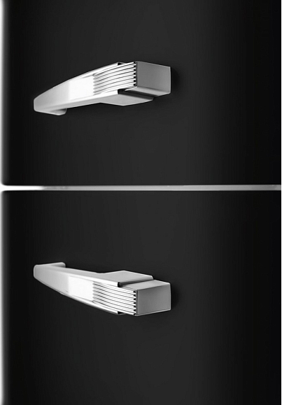Smeg FAB30LBL6 элегантная ретро-интерпретация середины XX века сочетает узнаваемые очертания и современную инженерию, предлагая визуальный акцент для кухонной зоны. Чёрный глянцевый фасад с серебристыми элементами подчёркивает классический силуэт, а аккуратная ручка и декоративные вставки придают образу аутентичную глубину; корпус создаёт эффект предмета мебели, способного служить центром внимания в интерьере. Форма и пропорции рассчитаны с учётом традиций 50‑х, при этом размеры 172×60,1×72,8 см (глубина с ручкой 78,8 см) обеспечивают комфортную установку в стандартном пространстве и позволяют разместить изделие как в компактной, так и в просторной кухне.