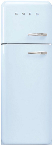Холодильник Smeg FAB30LPB5 выполнен в голубом цвете и прекрасно дополнит интерьер в стиле ретро вместе с другой техникой из коллекции 50-х годов. Боковая светодиодная подсветка не загораживается посудой и продуктами и ярко освещает внутреннее пространство камеры, что гарантирует комфорт эксплуатации. Прибор предусматривает в холодильном отделении 2 полки из закаленного стекла, которые легко переставляются по высоте и просты в уходе.
