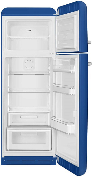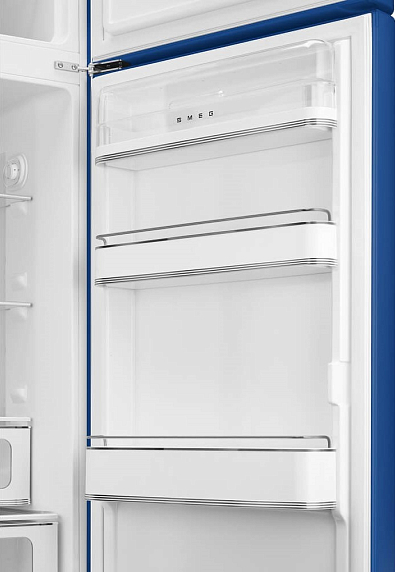 Холодильник Smeg FAB30RBE6 гармоничное сочетание винтажной эстетики и продуманной инженерии, созданное в Италии и выполненное в характерной коллекции, вдохновлённой стилем 50-х годов. Насыщенный синий корпус с серебристой фурнитурой привлекает внимание, становясь акцентом интерьера: ровные линии, округлые формы и хромированные детали напоминают эпоху, когда бытовая техника была не только практичной, но и визуально выразительной. Отдельностоящий классический форм-фактор обеспечивает простоту размещения на кухне, а дверной упор справа и глубина с ручкой 78,8 см учитывают эргономику при открывании и эксплуатации.