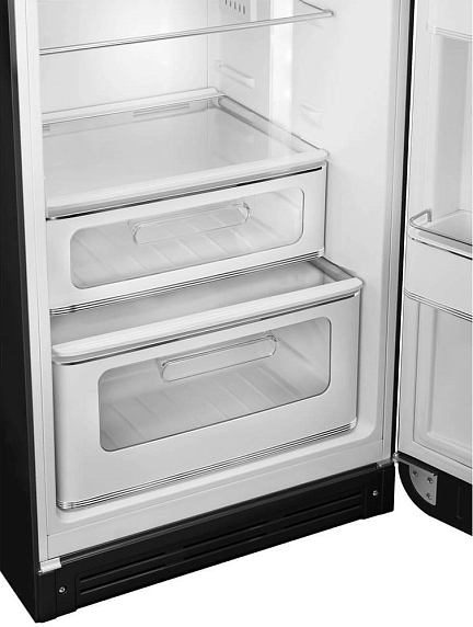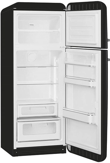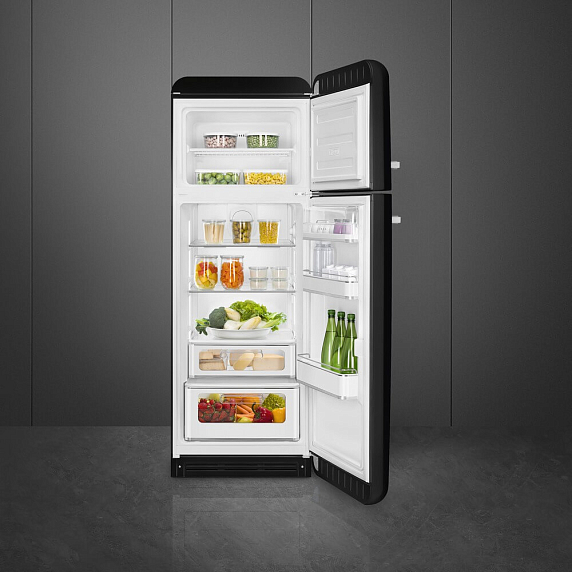 Холодильник Smeg FAB30RBL6 воплощенный в элегантном черном корпусе с аккуратной серебристой фурнитурой; дизайн коллекции «Стиль 50‑х годов» сочетает винтажные очертания с современными технологиями, создавая эффектный акцент в интерьере. Классический форм‑фактор и отдельно стоящая конфигурация делают прибор универсальным решением для кухонь разного размера, а продуманная геометрия корпуса (высота 172 см, ширина 60.1 см, глубина 72.8 см; глубина с ручкой 78.8 см) обеспечивает удобное размещение и интеграцию в рабочую зону. Итальянское происхождение подчеркивает внимание к деталям и качеству исполнения, что подтверждается двухлетней гарантией обслуживания.