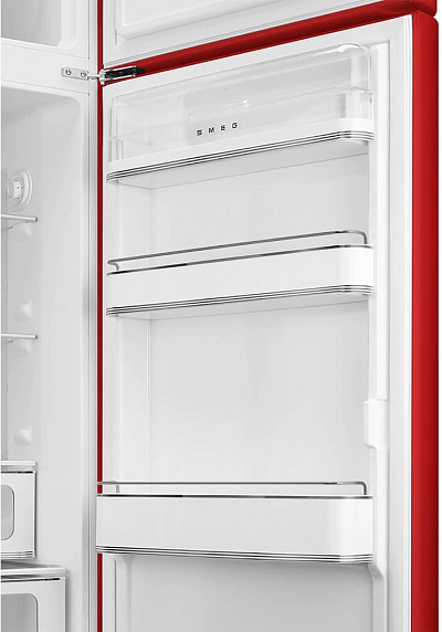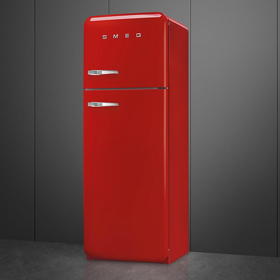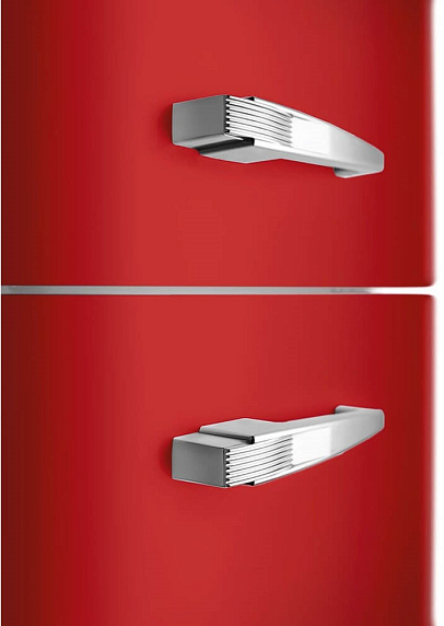 Сочетание узнаваемой эстетики 50‑х годов и современных технологий делает холодильник Smeg FAB30RRD6 не просто бытовой техникой, а выразительным элементом интерьера. Яркий красный корпус в паре с серебристой фурнитурой создаёт эффектную визуальную доминанту, которая легко обыгрывает как классические, так и обновлённые кухонные ансамбли. Классический форм‑фактор и округлые линии корпуса повторяют стиль ретро, при этом габариты — высота 172 см, ширина 60.1 см и глубина 72.8 см (78.8 см с ручкой) — обеспечивают удобное размещение в разных планировках, оставляя достаточно места для наполнения и манёвров при открывании дверцы с правым дверным упором. Итальянское происхождение подтверждает внимание к деталям: аккуратные пропорции, продуманная отделка и качественная сборка заметны при первом же осмотре.
