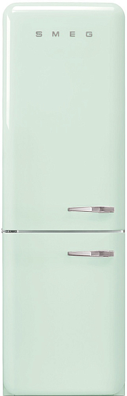 Холодильник Smeg FAB32LPG5 выполнен в зеленом цвете и подчеркнет интерьер кухни в стиле «Ретро». При помощи удобного электронного управления можно быстро настраивать температуры внутри камер, а также включать такие функции, как, например, «Суперзаморозка». Система NoFrost защищает отделения от образования наледи, что гарантирует комфорт эксплуатации прибора. Светодиодная подсветка расположена на стенках, благодаря чему не загораживается посудой и ярко освещает внутреннее пространство.