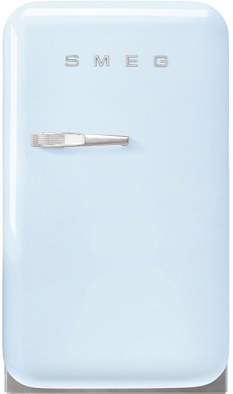 Минибар Smeg FAB5RPB5 выполнен в голубом цвете и станет прекрасным дополнением кухни вместе с другой техникой из коллекции «Стиль 50-х годов». Модель оснащена электронным управлением, которое гарантирует быструю настройку необходимых параметров. Светодиодная подсветка и стеклянные полки гарантируют комфорт использования прибора.