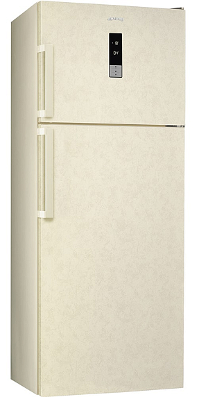 Общий объем составляет 434 литра, из которых 337 литров предназначены для холодильной камеры, а 98 литров — для морозильной. Холодильник оснащен системой автоматического размораживания и зоной свежести Life Plus 0°C для мяса и рыбы. В холодильной камере предусмотрены две регулируемые стеклянные полки, два ящика для овощей и фруктов, полка для бутылок и подставка для яиц. Морозильная камера расположена сверху и также оснащена автоматической системой размораживания. В морозильной камере есть одна полка и две полки на двери, а также ручной ледогенератор. Управление холодильником осуществляется через LСD-дисплей. Для безопасности детей предусмотрена блокировка управления. В обоих отделениях работает система NoFrost, что обеспечивает равномерное распределение температуры и предотвращает образование инея. Функция «Отпуск» позволяет экономить энергию во время вашего отсутствия. Внутреннее освещение выполнено на светодиодах, что обеспечивает яркий и равномерный свет.