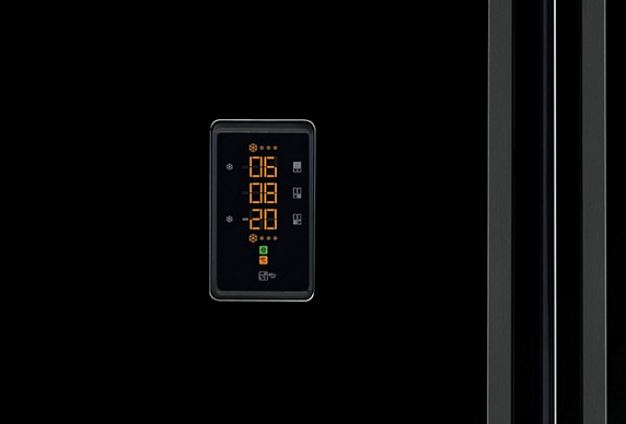 Черный глянцевый холодильник Side-by-Side благодаря четким линиям и минималистичному дизайну подчеркнет современный стиль кухни. Специальное покрытие, нанесенное на внешнюю поверхность модели, препятствует появлению отпечатков пальцев. Долговечная LED-подсветка ярко осветит все необходимые зоны, экономя электроэнергию. Уникальный отсек Multizone может быть использован в качестве морозильного или холодильного отделения, с программируемой температурой на внешнем дисплее. Функция SuperFreeze позволит быстро заморозить большое количество свежих продуктов.
