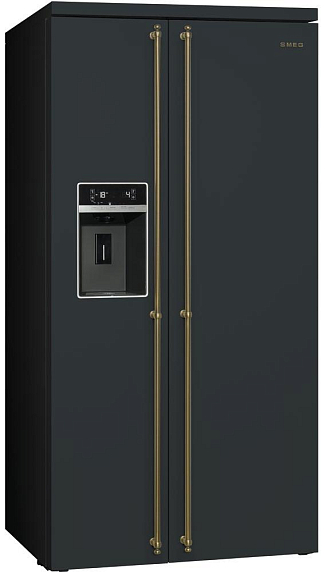 Отдельно стоящий холодильник SMEG SBS8004AO выполнен в цвете антрацит, роскошь и элегантность которого подчеркнута латунной фурнитурой. Система No Frost обеспечивает равномерную температуру воздуха внутри камер, что гарантирует лучшую сохранность продуктов. Зона сохранения свежести поддерживает установленную температуру, благодаря чему не изменяются органолептические свойства скоропортящихся продуктов. LCD-дисплей упрощает использование прибора, делая управление легким и комфортным.