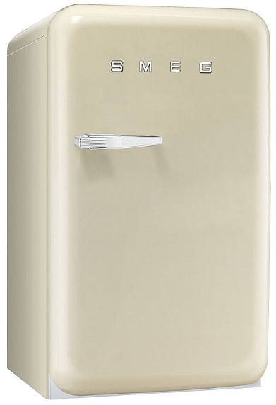 Компактный итальянский холодильник SMEG FAB10RP представлен в элегантном кремовом цвете и выполнен в стиле